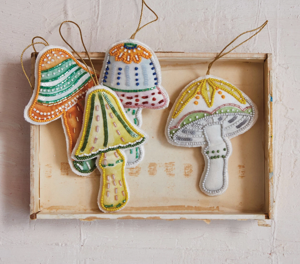 Mushroom Ornament w/ Glass Beads