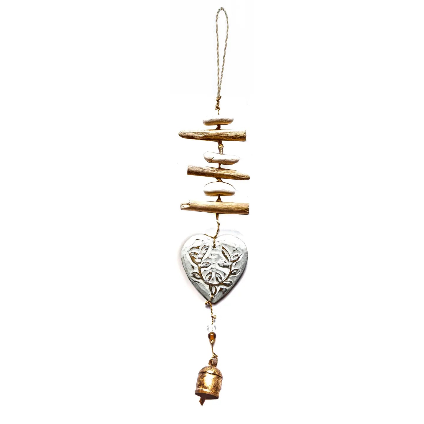 Single Wood Flowery Heart Wind Chime